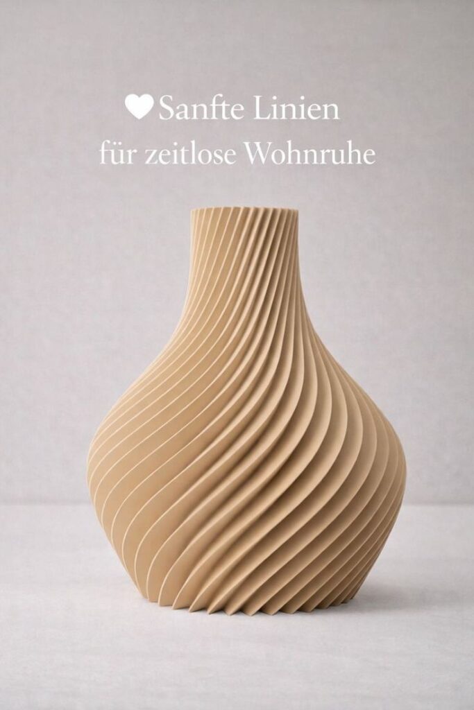 Diese Vase zeichnet sich durch ihre feine, gleichmäßig verlaufende Linienstruktur aus, die dem Objekt eine ruhige, geordnete Wirkung verleiht. Die vertikal geschwungenen Rillen erzeugen Tiefe und Rhythmus, ohne den Raum unruhig erscheinen zu lassen. Statt auffälliger Formen steht hier die Oberfläche im Mittelpunkt.