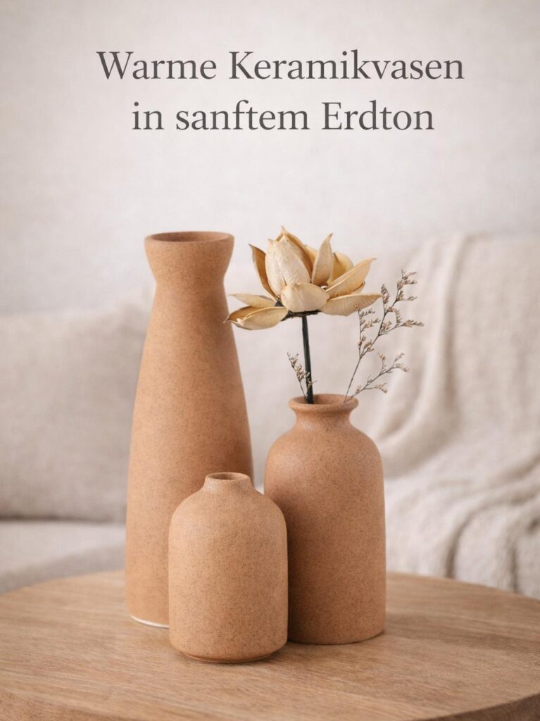 Keramikvasen in warmem Erdton, die dem Raum Geborgenheit geben und eine natürliche, ruhige Atmosphäre schaffen.