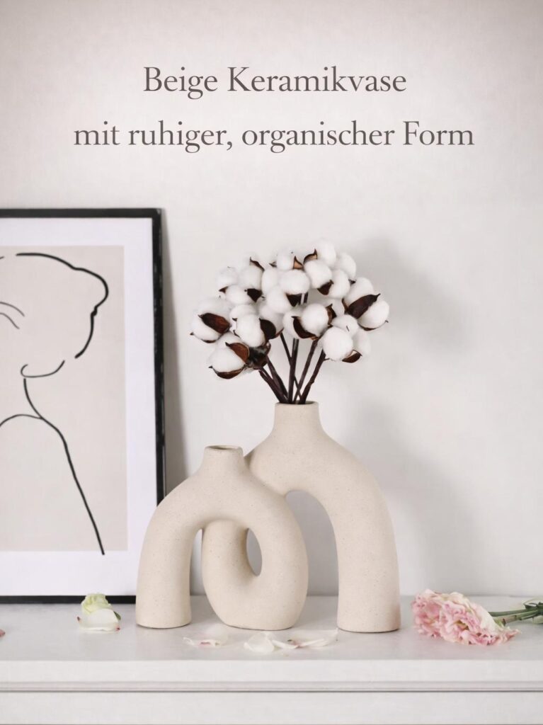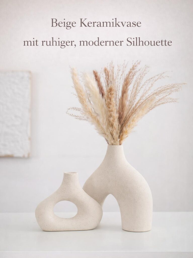 Der beige Farbton unterstreicht diese Klarheit und lässt die Vase zeitlos und vielseitig einsetzbar wirken. Sie passt besonders gut zu hellen Wohnräumen, natürlichen Materialien und minimalistischen Wohnideen. Auf Sideboards, Regalen oder Tischen platziert, wirkt sie stabil und ausgeglichen.